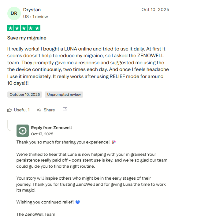 “used the relief mode with migraines… I’ve gotten rid of them.”